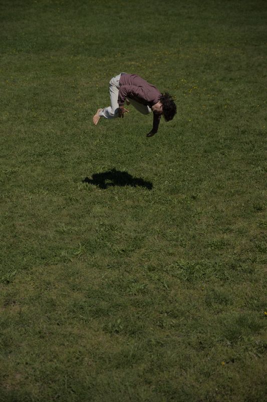 La chute, et son rattrapage, comme élément primordial de tout geste et de la technicité du mouvement, rassemble ce potentiel direct entre le jeu dansé, le jeu théâtrale, et l’approche circassienne.